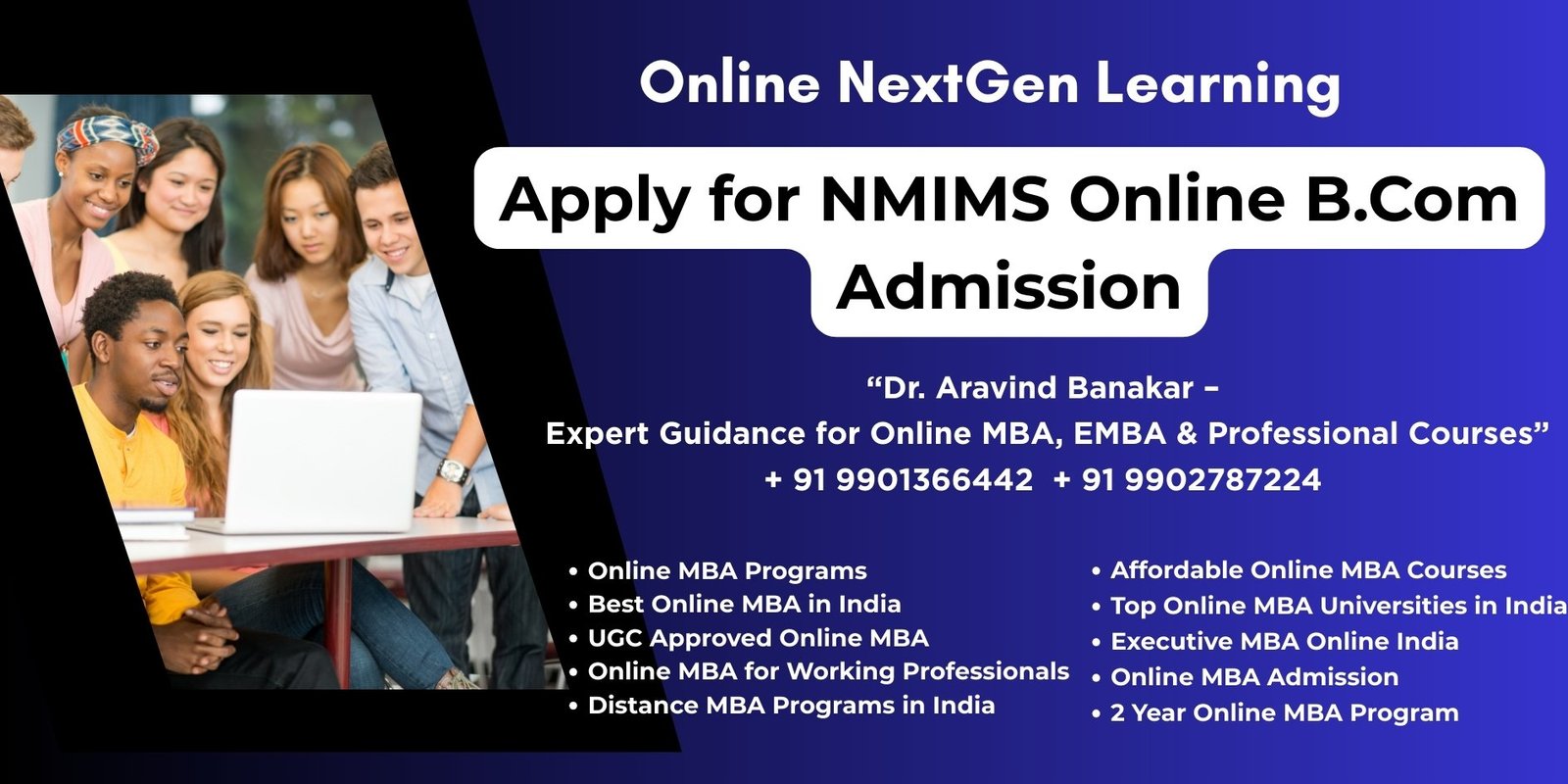 For admissions to NMIMS Online MBA, Executive MBA, BBA, B.Com